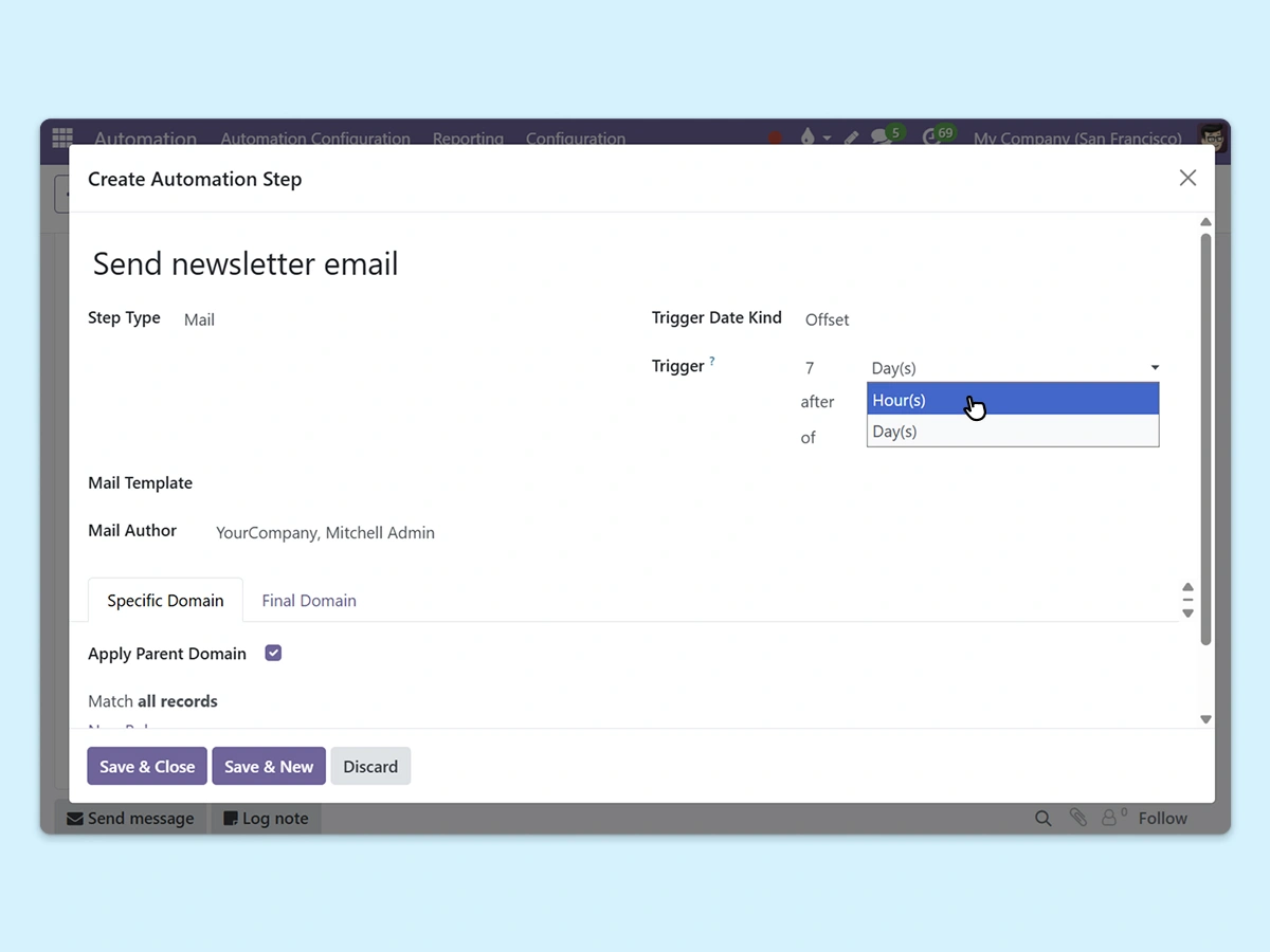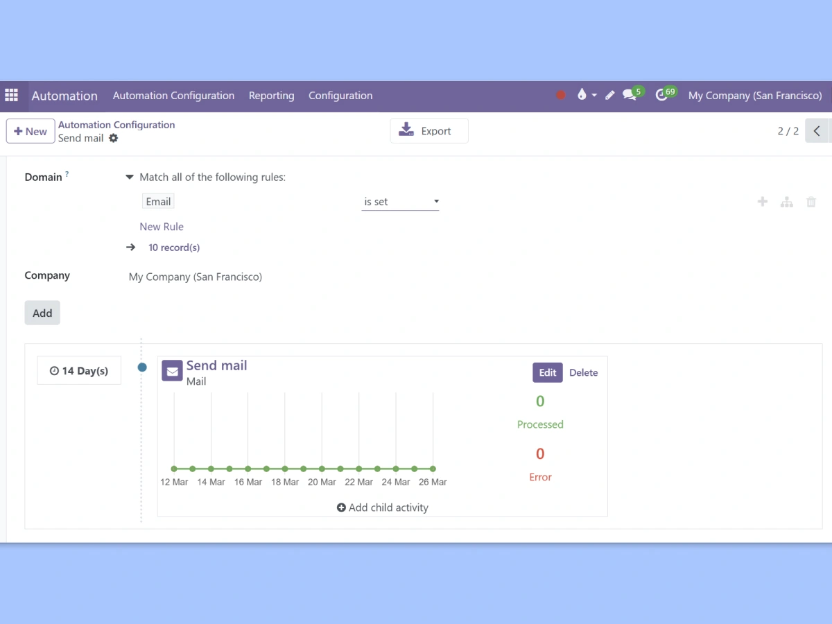 Build chains of automated actions — email flows, activity assignments, and scheduled follow-ups that execute in sequence. For advanced users, server actions with custom code are also available. Multiple triggers ensure workflows run at exactly the right moment.