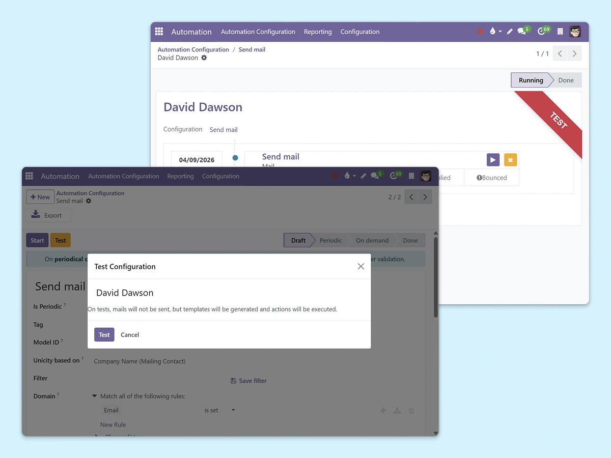 Validate your automations in a controlled environment before activating them on production data. This minimizes risks and ensures every rule works as expected — so you can deploy with confidence, not crossed fingers.