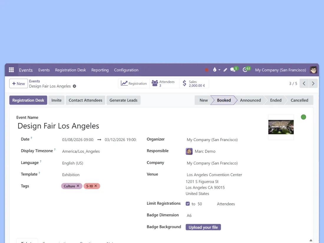 Event management built on an open source ERP, backed by experts