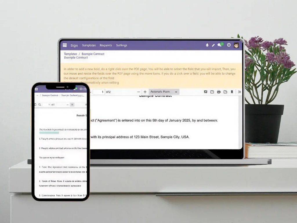 Sign documents electronically, manage templates, and automate approval workflows — connected to sales, HR, and accounting in one system.