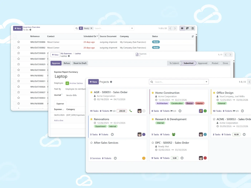 A Cloud ERP acts as the operating system of your business. All information lives in one place, updates in real time, and connects every team — so processes run end-to-end without manual handoffs.